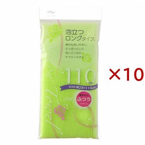 アイセン ナイロンタオル 110cm ふつう グリーン BHN03 (10セット)