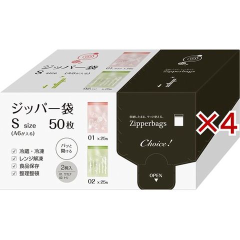 チョイス ジッパー袋 S 2柄 グリーン・レッド (50枚入×4セット)