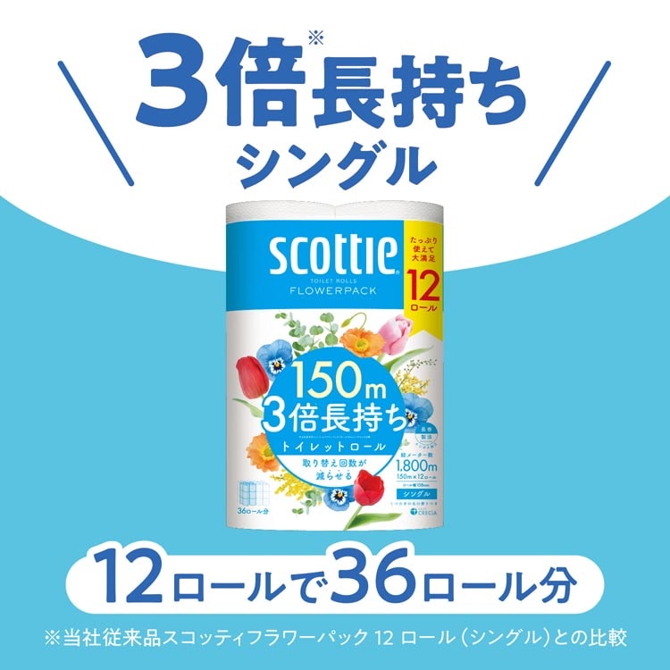 【スコッティ フラワーパック 3倍長持ち トイレットペーパー シングルの商品詳細】