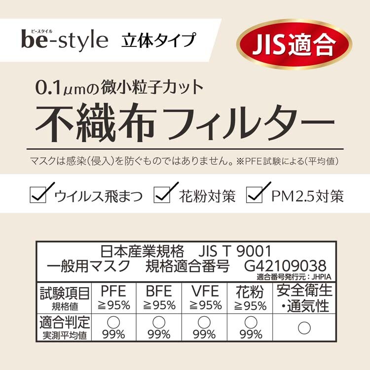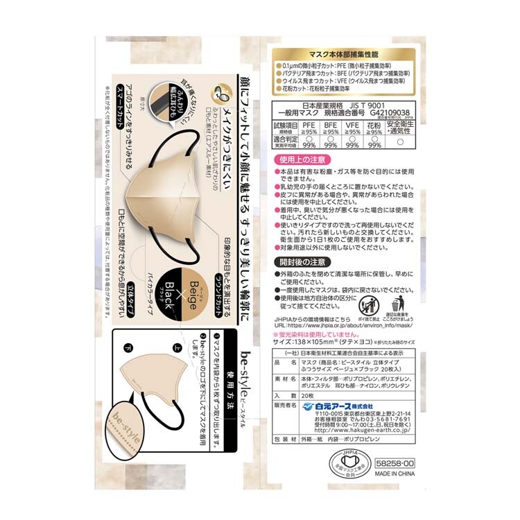 【ビースタイル 立体タイプ ふつうサイズ ベージュ×ブラックの商品詳細】