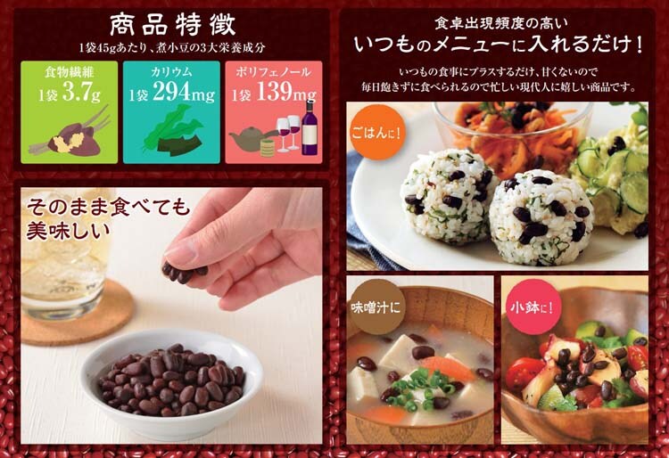 ●煮汁ごと煮つめて、あずきの栄養*をしっかり閉じ込めました。