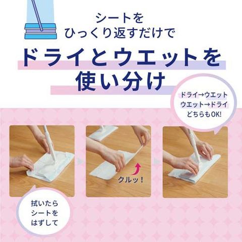 ●ドライ面ではほこり・髪の毛をキャッチ、ウエット面では油・皮脂汚れを拭き取る。