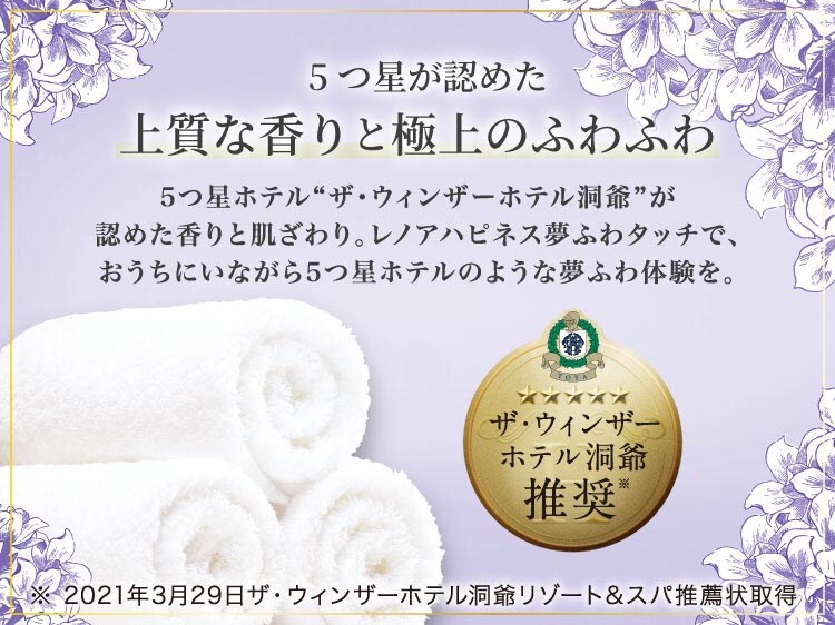 【レノア ハピネス 5つ星ホテルの夢ふわタッチ 柔軟剤 ホワイトムスクの香り 本体の商品詳細】