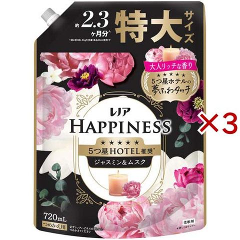 レノア ハピネス 5つ星ホテルの夢ふわタッチ 柔軟剤 ジャスミン&ムスク 詰替 特大 (720ml×3セット)
