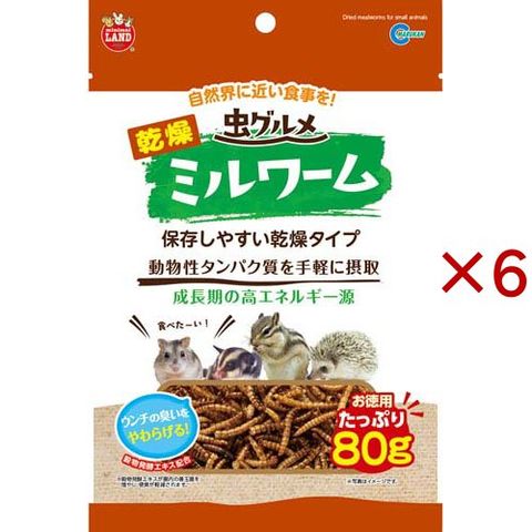 虫グルメ 乾燥ミルワーム (80g×6セット)