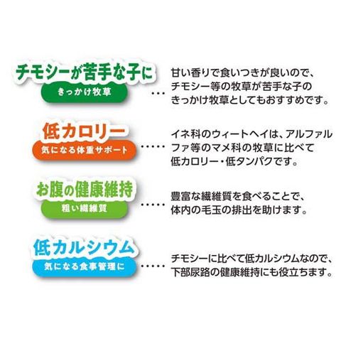 ●甘い香りで食いつきが良いので、チモシー等の牧草が苦手なペットにもおすすめです。