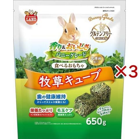●かじって遊ぶこともできるように、うさぎが大好きな牧草をギュッと固めました。