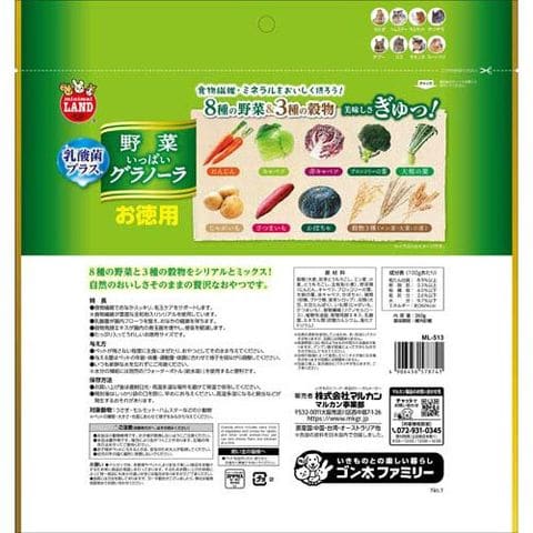 ●8種の野菜と3種の穀物をシリアルとミックス。