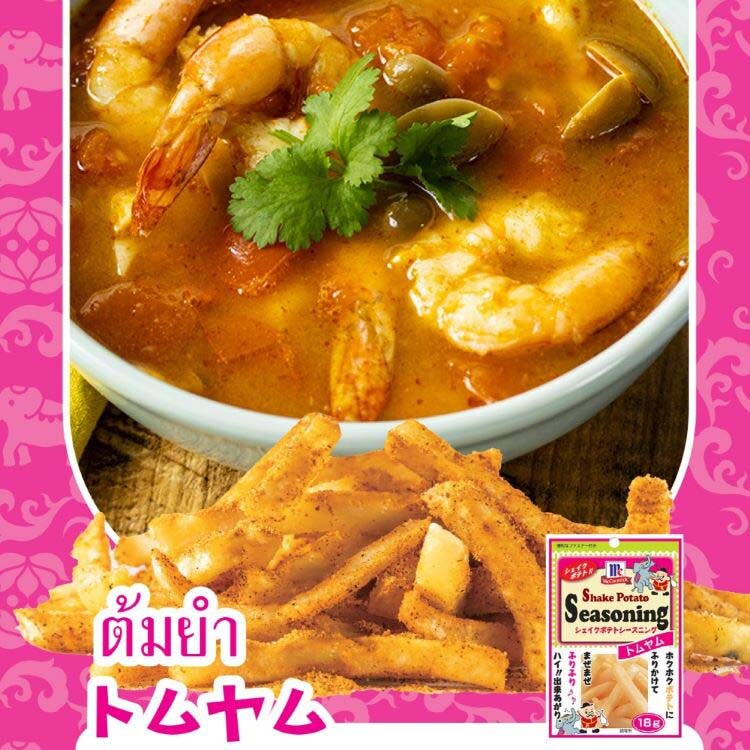 ●カフィアライムやレモングラスの効いた世界三大スープのひとつ「トムヤム」味のフライドポテトが楽しめる調味料です。