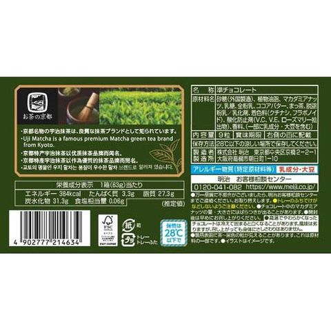 | 砂糖(外国製造)、植物油脂、マカダミアナッツ、乳糖、全粉乳、ココアバター、まっ茶、脱脂粉乳/乳化剤、着色料(クチナシ、フラボノイド)、酸化防止剤(V.C、V.E、ローズマリー抽出物)、香料、(一部に乳成分・大豆を含む) |