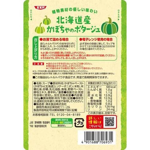 | かぼちゃペースト(かぼちゃ(北海道))、ソテーオニオン、米粉、米糖化液、砂糖、乳化油脂、食塩、野菜ペースト、酵母エキス、香辛料/重曹 |