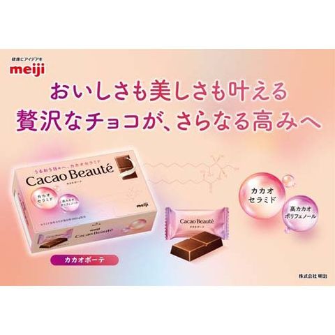 ●低糖タイプ 明治ミルクチョコレート比糖類40%減・美容に嬉しいセラミド含有カカオ抽出物配合。