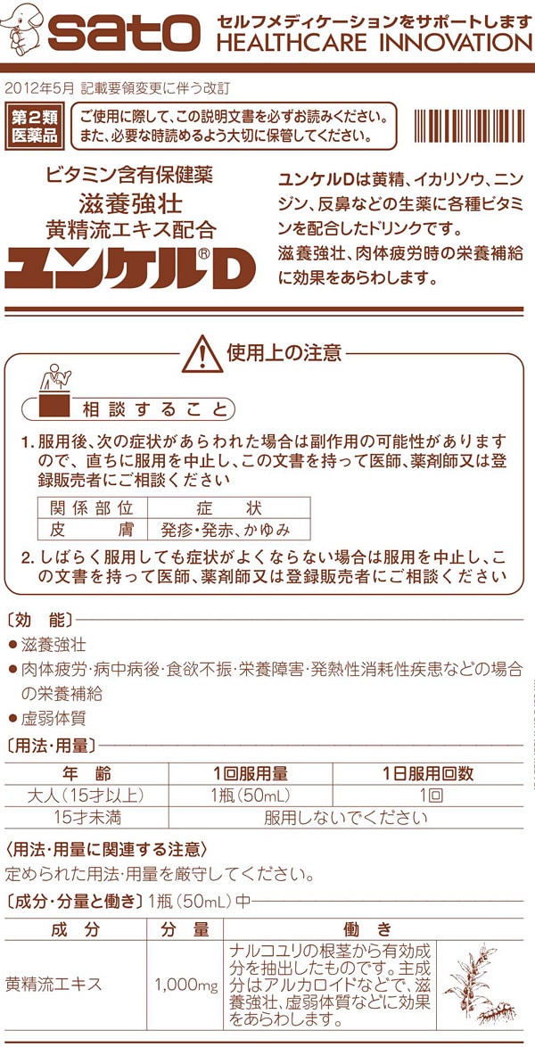 ●ユンケルDは黄精、イカリソウ、ニンジン、反鼻などの生薬に各種ビタミンを配合したドリンクです。