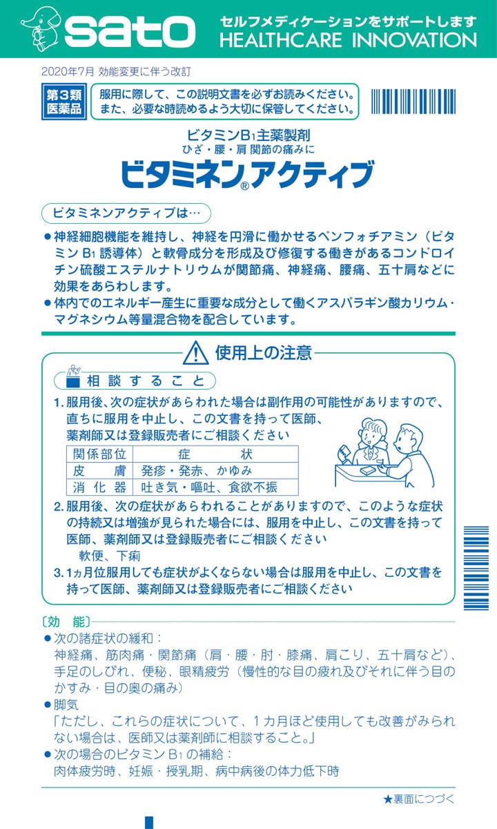 | ・次の諸症状の緩和:神経痛、筋肉痛・関節痛(肩・腰・肘・膝痛、肩こり、五十肩など)、手足のしびれ、便秘、眼精疲労(慢性的な目の疲れ及びそれに伴う目のかすみ・目の奥の痛み) ・脚気 「ただし、これらの症状について、1カ月ほど使用しても改善がみられない場合は、医師又は薬剤師に相談すること。」 ・次の場合のビタミンB1の補給: 肉体疲労時、妊娠・授乳期、病中病後の体力低下時 |