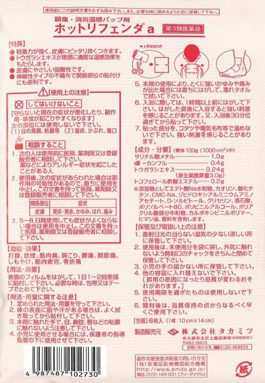 7.貼った部分を、コタツや電気毛布等で温めないで下さい。強い刺激を感じることがあります。
