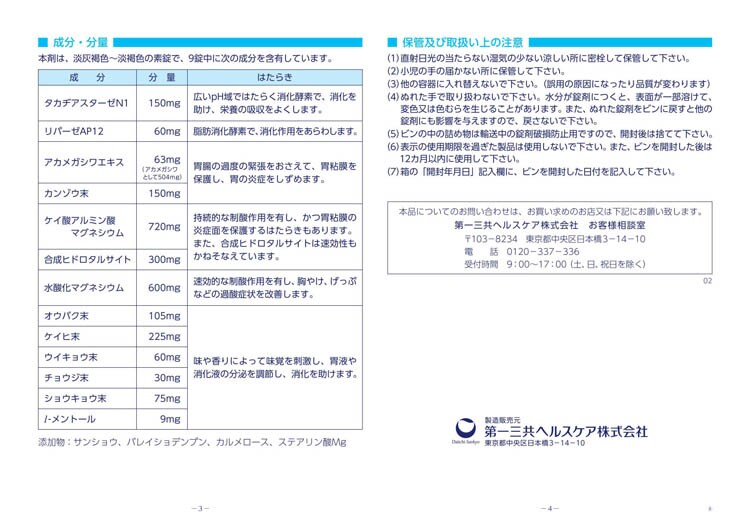 【販売名】第一三共胃腸薬錠剤s