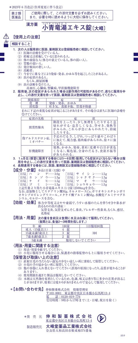 【販売名】小青竜湯エキス錠[大峰]