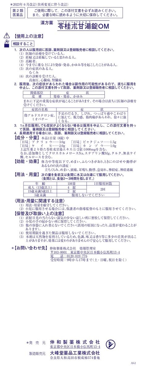 【販売名】苓桂朮甘湯錠OM