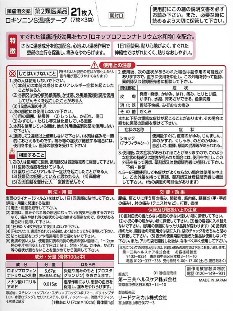 【ロキソニンS温感テープの商品詳細】
