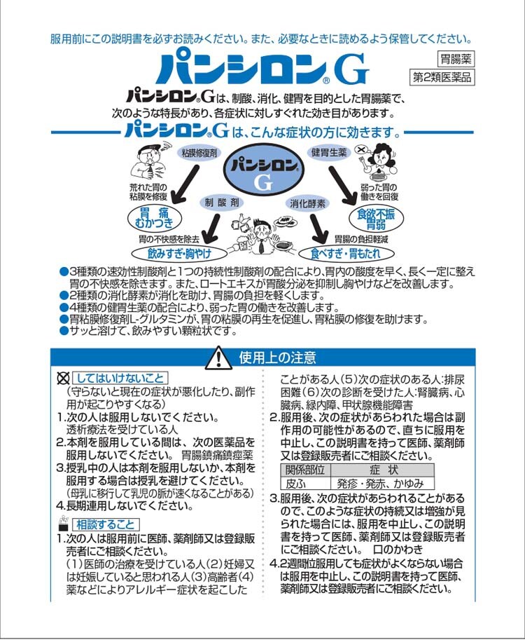 2.服用後、次の症状があらわれた場合は副作用の可能性があるので、直ちに服用を中止し、この説明書を持って医師、薬剤師又は登録販売者にご相談ください。