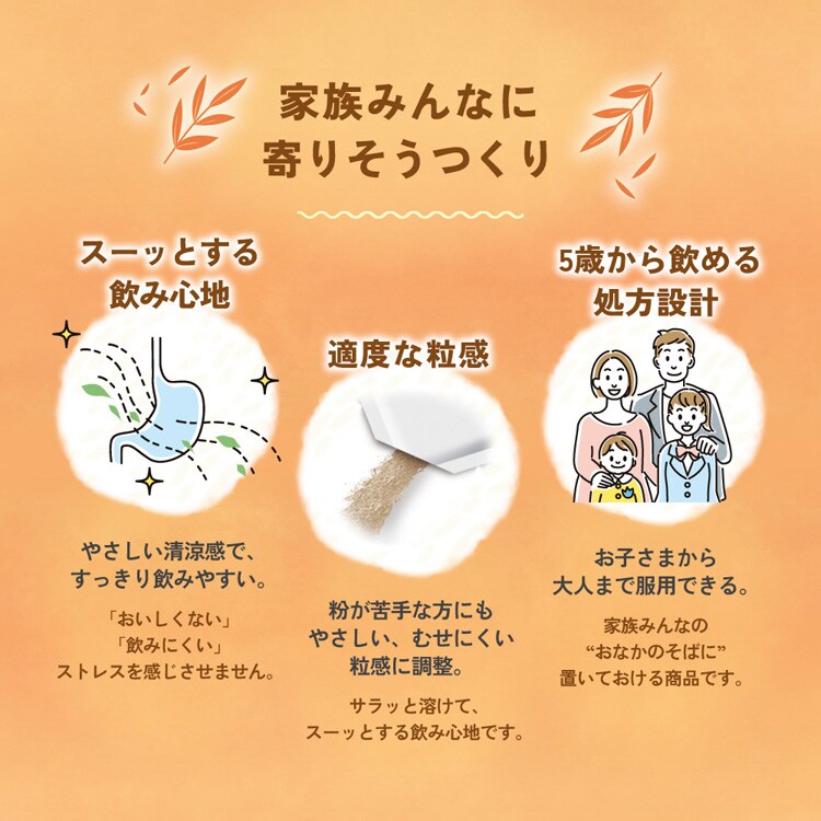 | ★有効成分と作用(3包中) [有効成分:配合量:作用] 粘膜修復剤:L-グルタミン:405mg:胃壁のただれや炎症に対して、胃の粘膜を修復し正常に戻す働きをします。 健胃生薬:桂皮(ケイヒ):150mg:胃のためによい生薬で、特有の芳香性や苦みを持つ健胃生薬です。消化液の分泌を促して、食欲の増進をはかると共に胃腸の働きをよくします。 健胃生薬:桂皮油(ケイヒ油):6mg:胃のためによい生薬で、特有の芳香性や苦みを持つ健胃生薬です。消化液の分泌を促して、食欲の増進をはかると共に胃腸の働きをよくします。 健胃生薬:縮砂(シュクシャ):90mg:胃のためによい生薬で、特有の芳香性や苦みを持つ健胃生薬です。消化液の分泌を促して、食欲の増進をはかると共に胃腸の働きをよくします。 健胃生薬:当薬(センブリ):3mg:胃のためによい生薬で、特有の芳香性や苦みを持つ健胃生薬です。消化液の分泌を促して、食欲の増進をはかると共に胃腸の働きをよくします。 制酸剤:炭酸水素ナトリウム:1950mg:胸やけなどに見られる過酸症状の緩和にすぐれた効き目のある速効性の制酸剤で、胃の中の酸度を早く一定に整え、消化剤の働きやすい状態を作ります。 制酸剤:重質炭酸マグネシウム:600mg:胸やけなどに見られる過酸症状の緩和にすぐれた効き目のある速効性の制酸剤で、胃の中の酸度を早く一定に整え、消化剤の働きやすい状態を作ります。 制酸剤:沈降炭酸カルシウム:300mg:胸やけなどに見られる過酸症状の緩和にすぐれた効き目のある速効性の制酸剤で、胃の中の酸度を早く一定に整え、消化剤の働きやすい状態を作ります。 制酸剤:サナルミン:399mg:制酸効果を長く保つ持続性制酸剤で胃の中の酸度を長く一定に整え、胃壁を保護します。 制酸剤:ロートエキス:30mg:胃液分泌抑制作用があり、制酸剤と組み合わせると胃酸中和効果が持続します。 消化剤:ジアスメンSS:240mg:炭水化物の消化を助け胃の負担を軽くします。 消化剤:プロザイム:51mg:タンパク質の消化を助け胃の負担を軽くします。 添加物:l-メントール、セルロース、ケイ酸Al、ステアリン酸Mg |