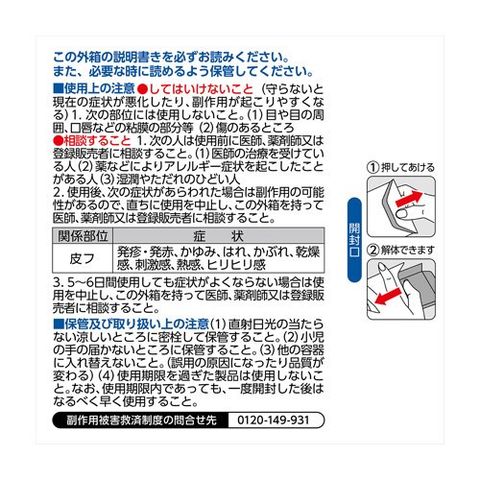 2.使用後、次の症状があらわれた場合は副作用の可能性があるので、直ちに使用を中止し、外箱を持って医師、薬剤師又は登録販売者に相談すること。