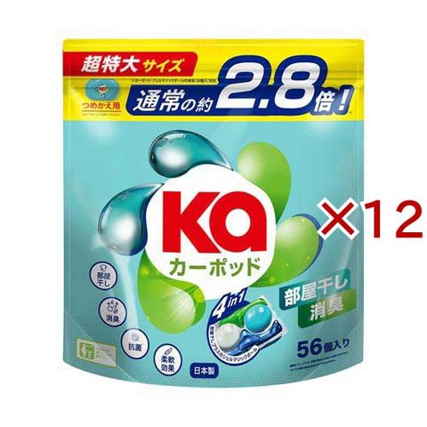 カーポッド(Ka) 部屋干しEX ボール型洗濯洗剤 フレッシュハーブ 詰替 (56個入×12セット)