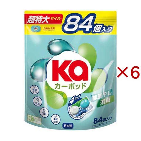 カーポッド(Ka) 部屋干しEX ボール型洗濯洗剤 フレッシュハーブ 詰替 (84個入×6セット)