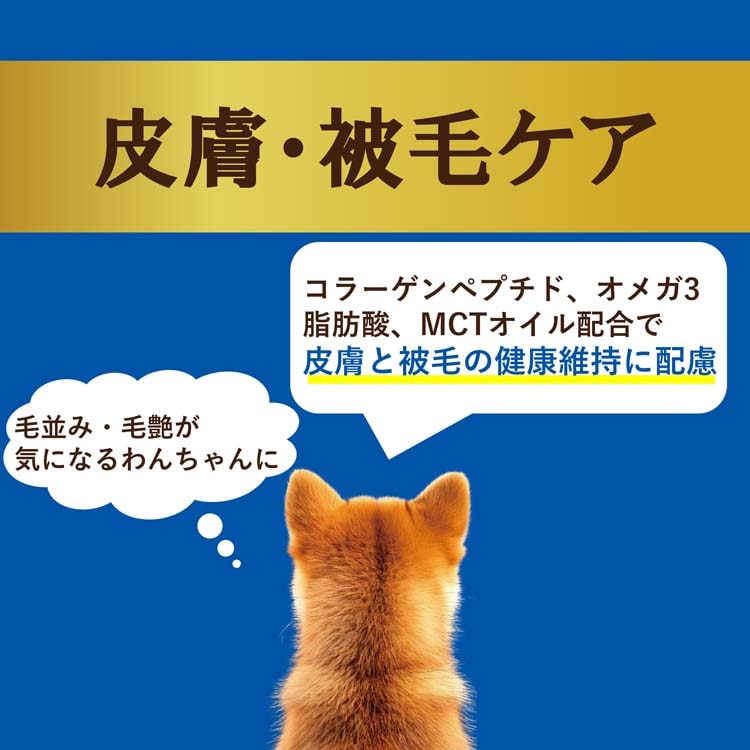 ●コラーゲンペプチド、オメガ3脂肪酸、MCTオイル配合で、皮膚と被毛の健康維持に配慮。