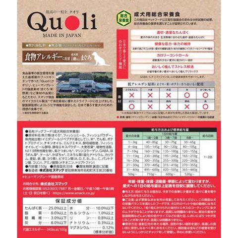 【獣医師監修 Quoli(クオリ) 食物アレルギーに配慮 成犬用 まぐろの商品詳細】