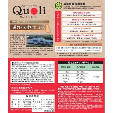 【獣医師監修 Quoli(クオリ) 避妊・去勢 成猫用 まぐろの商品詳細】