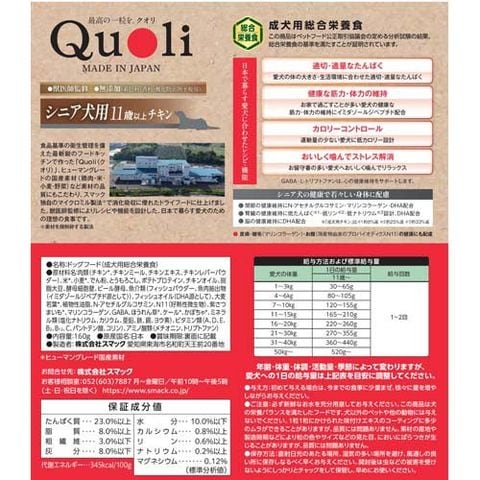 【獣医師監修 Quoli(クオリ) シニア犬用 チキンの商品詳細】