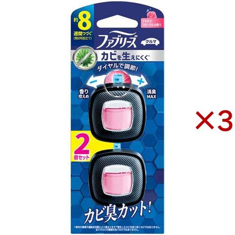 ファブリーズ クルマ 消臭・芳香剤 カビを生えにくく プラチナフローラル (2個入×3セット(1個2.5ml))