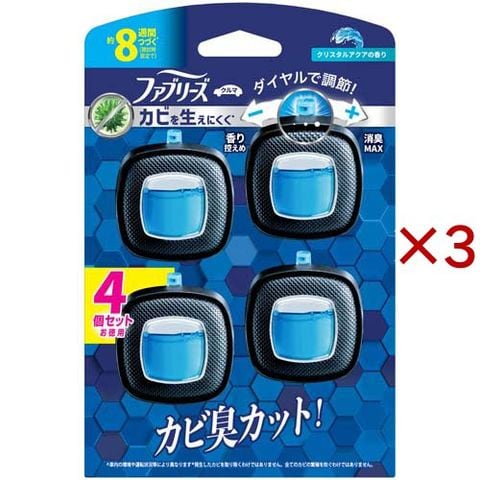 ファブリーズ クルマ 消臭・芳香剤 カビを生えにくく クリスタルアクア (4個入×3セット(1個2.5ml))