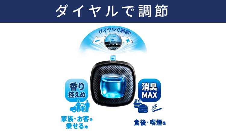 (3) 効果の調節 ダイヤルで香り・消臭の強さを調節。