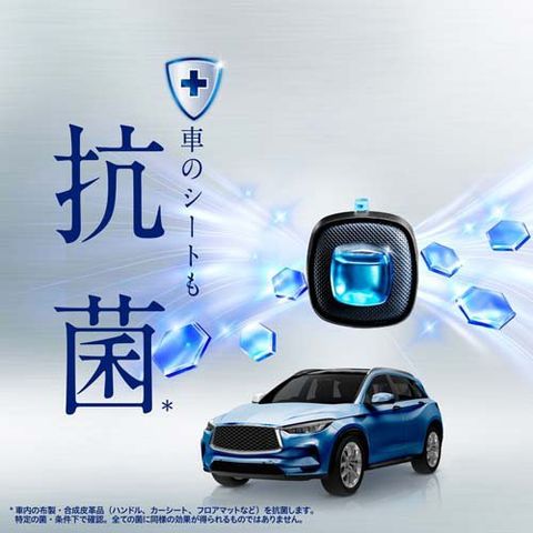 ●車内の布製・合成皮革製品(ハンドル、カーシート、フロアマットなど)を抗菌します。特定の菌・条件下で試験。全ての菌に同様の効果が得られるものではありません。