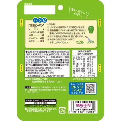 | きはだまぐろ(輸入)、粒状大豆たん白、食用ごま油、食用大豆油、チキンエキスパウダー、食塩、香辛料/調味料(アミノ酸等)、増粘剤(グァーガム) |