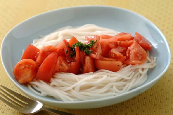 ・約8分茹で、ゆであがったら湯切りをし、水洗いをして水気を切る。