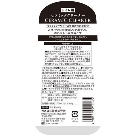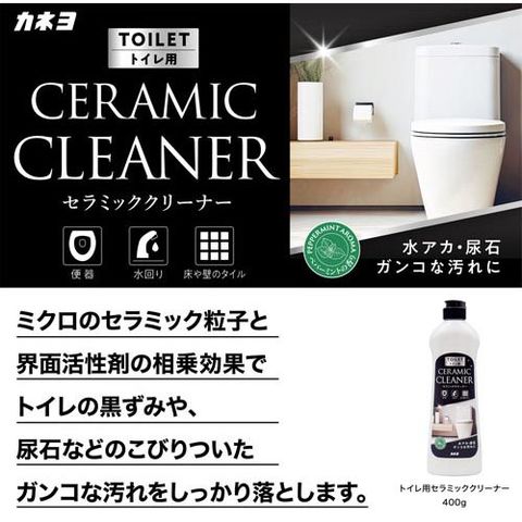 ●ミクロのセラミック粒子と界面活性剤の相乗効果でトイレの黒ずみや、尿石などのこびりついたガンコな汚れをしっかり落とします。