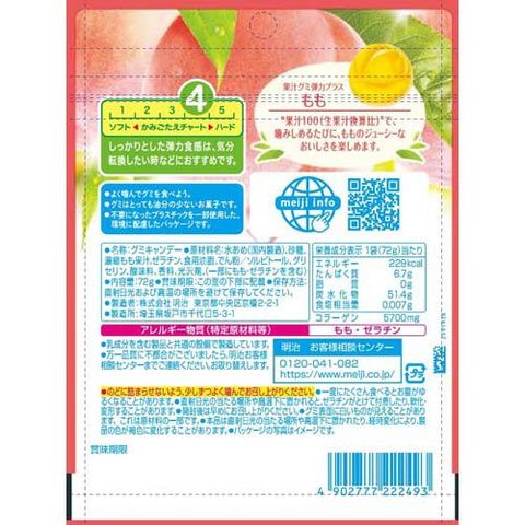 | 水あめ(国内製造)、砂糖、濃縮もも果汁、ゼラチン、食用油脂、でん粉/ソルビトール、グリセリン、酸味料、香料、光沢剤、(一部にもも・ゼラチンを含む) |