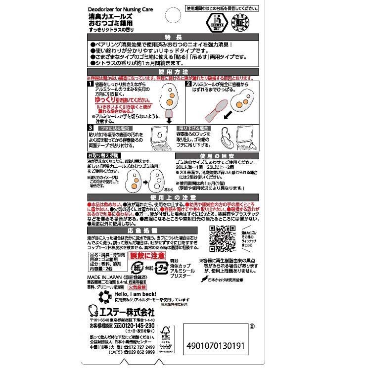 【エールズ 消臭力 おむつゴミ箱用 介護 消臭剤 すっきりシトラスの香りの商品詳細】
