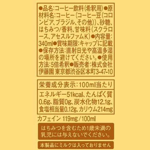 タリーズ エスプレッソベース ハニーラテベース 希釈 ペットボトル (12本入×2セット(1本340ml))のレビュー