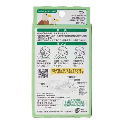 ●小児の斜視・弱視の訓練方法のひとつとして健康な眼を遮へいし、弱視眼を使用させ、視力の発達をうながす眼帯です。