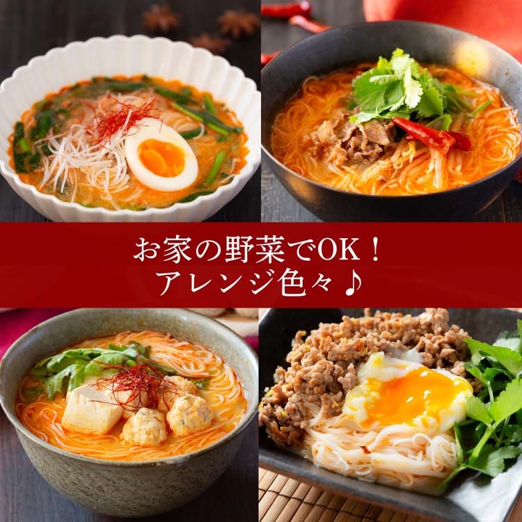 ●しなやかな汁専用ビーフンに、痺れる辛みと爽やかな香りが楽しめるスープを合わせました。