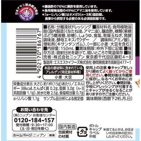 ニップン おいしいアマニ油入りドレッシング 黒酢たまねぎ (150ml×6セット)