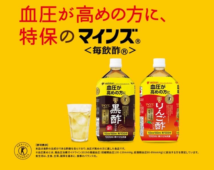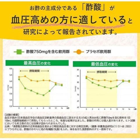 許可表示:本品は食酢の主成分である酢酸を含んでおり、血圧が高めの方に適した食品です。