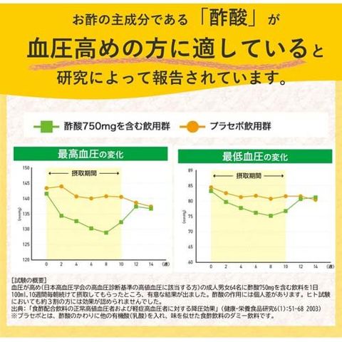 許可表示:本品は食酢の主成分である酢酸を含んでおり、血圧が高めの方に適した食品です。