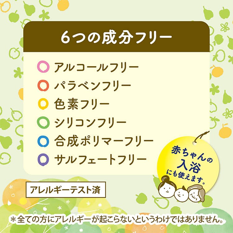 ●6つの成分フリー アルコールフリー/ パラベンフリー/色素フリー/シリコンフリー/合成ポリマー フリー/サルフェートフリー