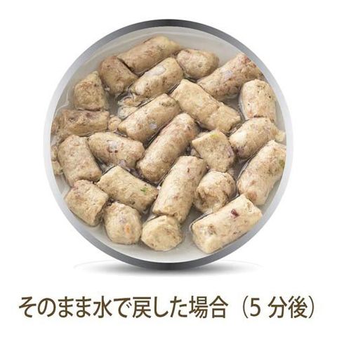 | 鶏肉、肝臓(鶏)、フラックスシードフレーク、ホキ(白身魚)オイル、にんじん、ニュージーランド緑イ貝、かぼちゃ、ブロッコリー、乾燥昆布、リン酸ニカリウム、ビタミンE、塩化ナトリウム、ミネラル類、プロティネイト亜鉛、プロティネイト鉄、酸化マグネシウム、セレン酵母、プロティネイト銅、プロティネイトマンガン、ビタミン類、ビタミンB1、ベータカロチン、葉酸、ビタミンD3 |