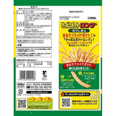 | ポテトパウダー(ドイツ製造)、植物油、でん粉、小麦粉、食塩、デキストリン、青のり、あおさ / 加工デンプン、調味料(アミノ酸)、炭酸カルシウム、酸化防止剤(ビタミンC) |
